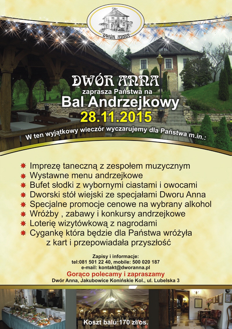 Acerna, Atrium, SM Rzemieślnik, Kraśnik, Sylwester Lublin, Bajka Krynica Zdrój, Sala weselna Pokoje gościnne, Andrzejki w Lublinie