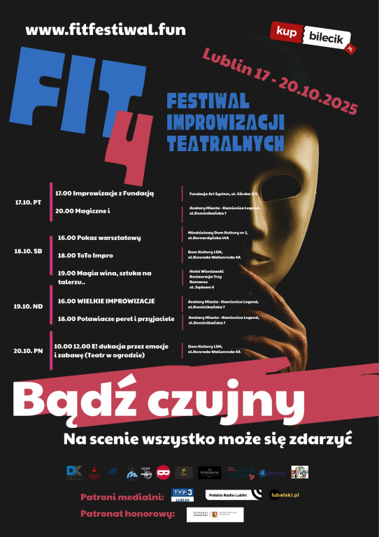 - 18:00– Poławiacze Pereł Improv Teatr i przyjaciele | Avatary Miasta | Kamienica Legend, ul. Dominikańska 7 | Wstęp: do kapelusza | Ilość miejsc ograniczona – zapisy: fitfestiwal@gmail.com