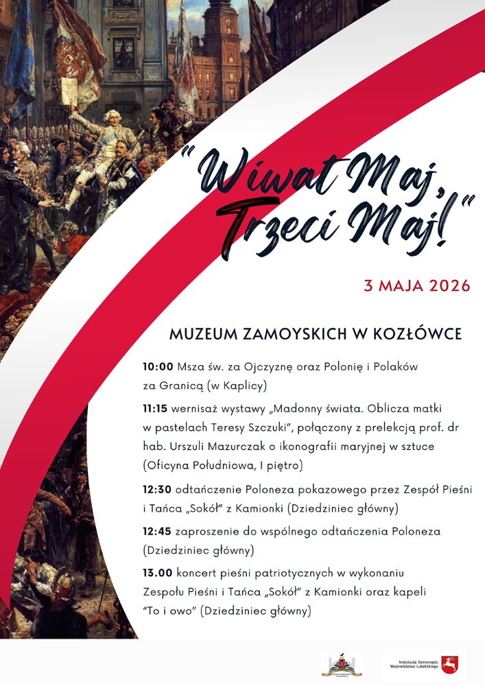 Uroczyste obchody Narodowego Święta Trzeciego Maja oraz Dnia Polonii i Polaków za Granicą odbędą się 3 maja w wyjątkowej scenerii Kozłówki. Wydarzenie będzie okazją do wspólnego świętowania w atmosferze dumy narodowej, radości i wspólnoty.